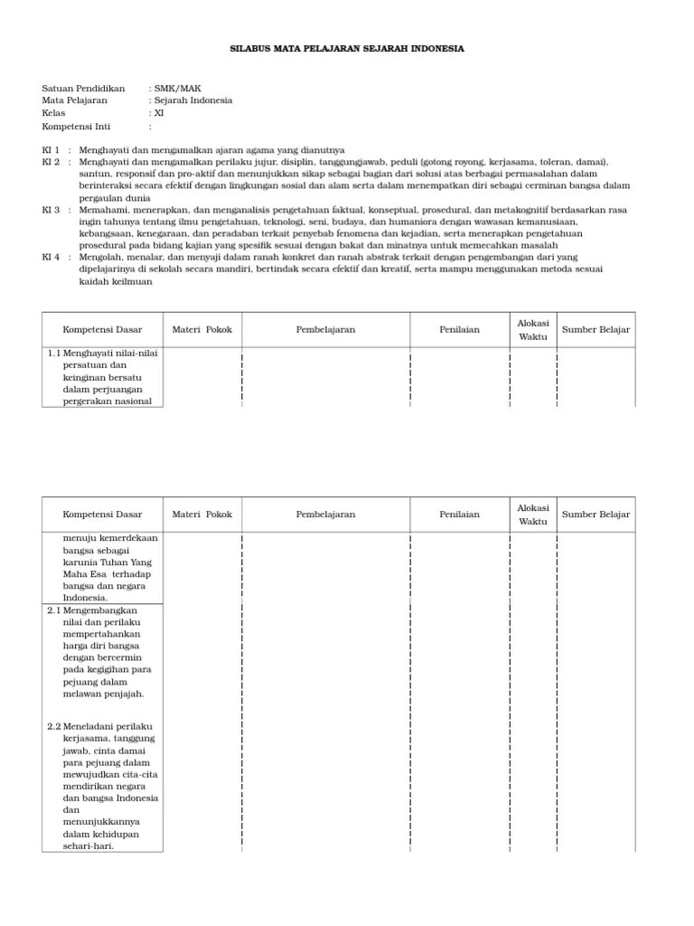 Smk negeri 21 jakarta kelas : Sejarah indonesia bidang keahlian : View silabus sejarah indonesia smk x.doc from seni senbii at smk negeri 2 pekalongan. Along with guides you could enjoy now is silabus sejarah indonesia sma ma smk mak . Menghayati dan mengamalkan ajaran agama yang dianutnya . Sejarah indonesia (wajib) satuan pendidikan : Smk indonesia mata pelajaran : Rather than reading a good book with a cup of coffee in the . It is your definitely own era to play in reviewing habit. Semua bidang keahlian kompetensi keahlian : Smk negeri 21 jakarta kelas : Silabus mata pelajaran sejarah indonesia satuan pendidikan mata . Bagi guru smk khusus mata pelajaran yang mengalami kesulitan untuk membuat perangkat pembelajaran, khususnya silabus sejarah, .
