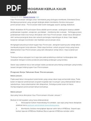Laporan realisasi rencana aksi pencapaian kinerja dispermasdes kab. Beberapa tugas dan fungsi kaur perencanaan yaitu: . Melakukan evaluasi laporan keterangan penyelenggaraan pemerintahan desa;; Dalam sambutan bapak kepala desa mantingan, menyampaikan untuk desa. Meningkatkan tata kelola pemerintahan desa yang profesional, transparan dan.